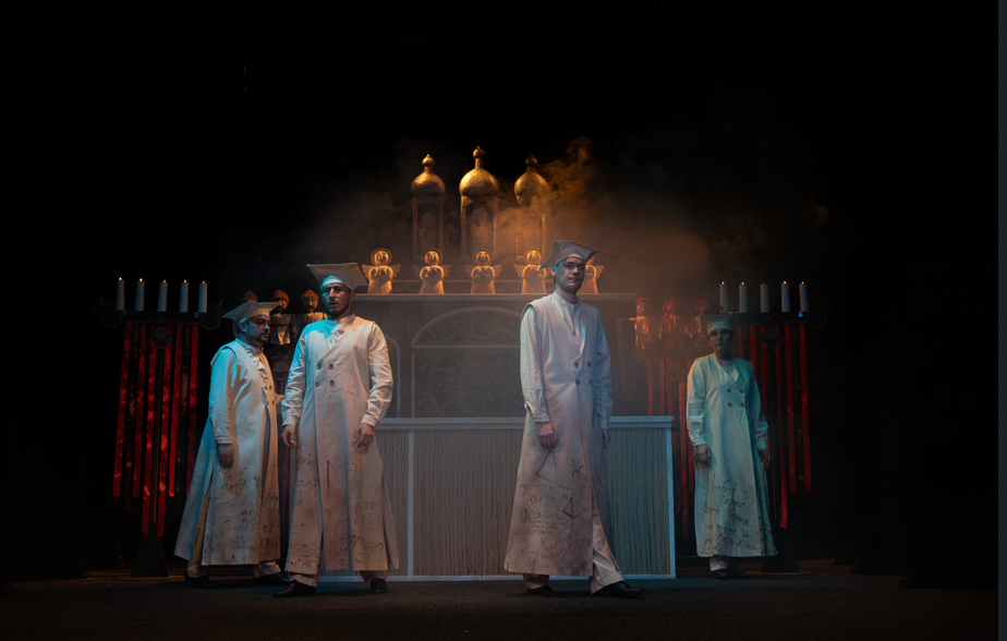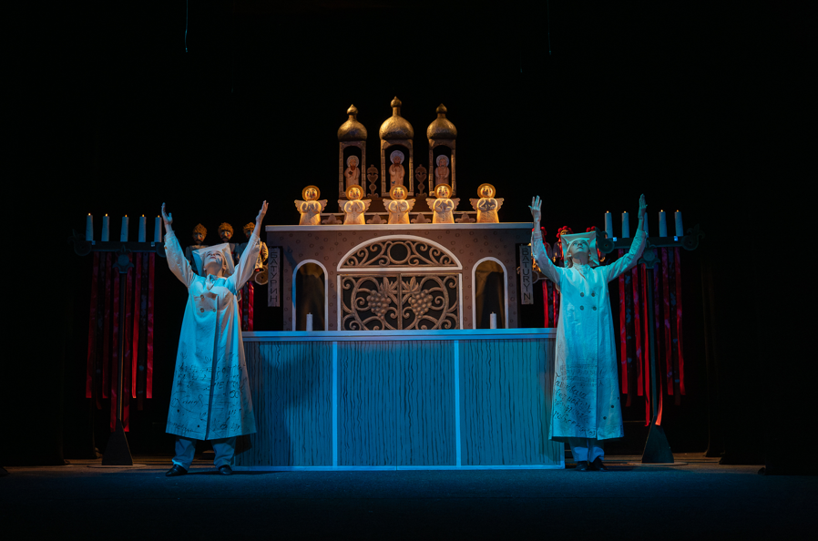 У виставі поєднується в собі сакральне та буденне, міф та історія. Водночас дія створена у формі «лялькової містерії» – жанру, де лінії реального та містичного буфону зливаються, переплітаючись у гротескному, але глибоко символічному переповіданні.